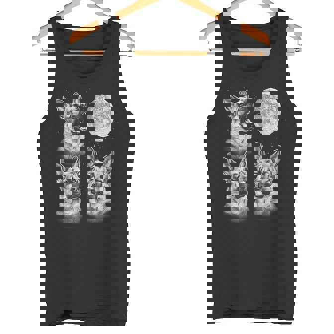 Three German Shepherd Howl At Moon Dog Lovers Retro Graphic Tank Top