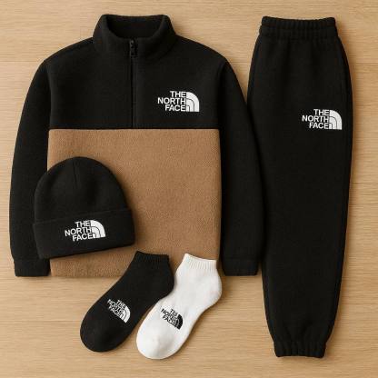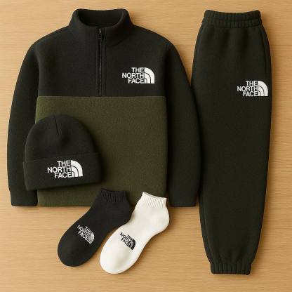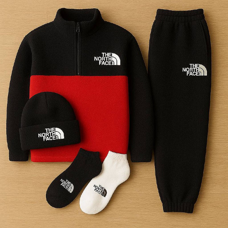 Discover the TNF™ Complete Set, the perfect kit to take on every day with style and comfort. This set includes a Pile tracksuit with a quart-zip hoodie and matching joggers, Beanie & Socks included that’s warm yet lightweight.