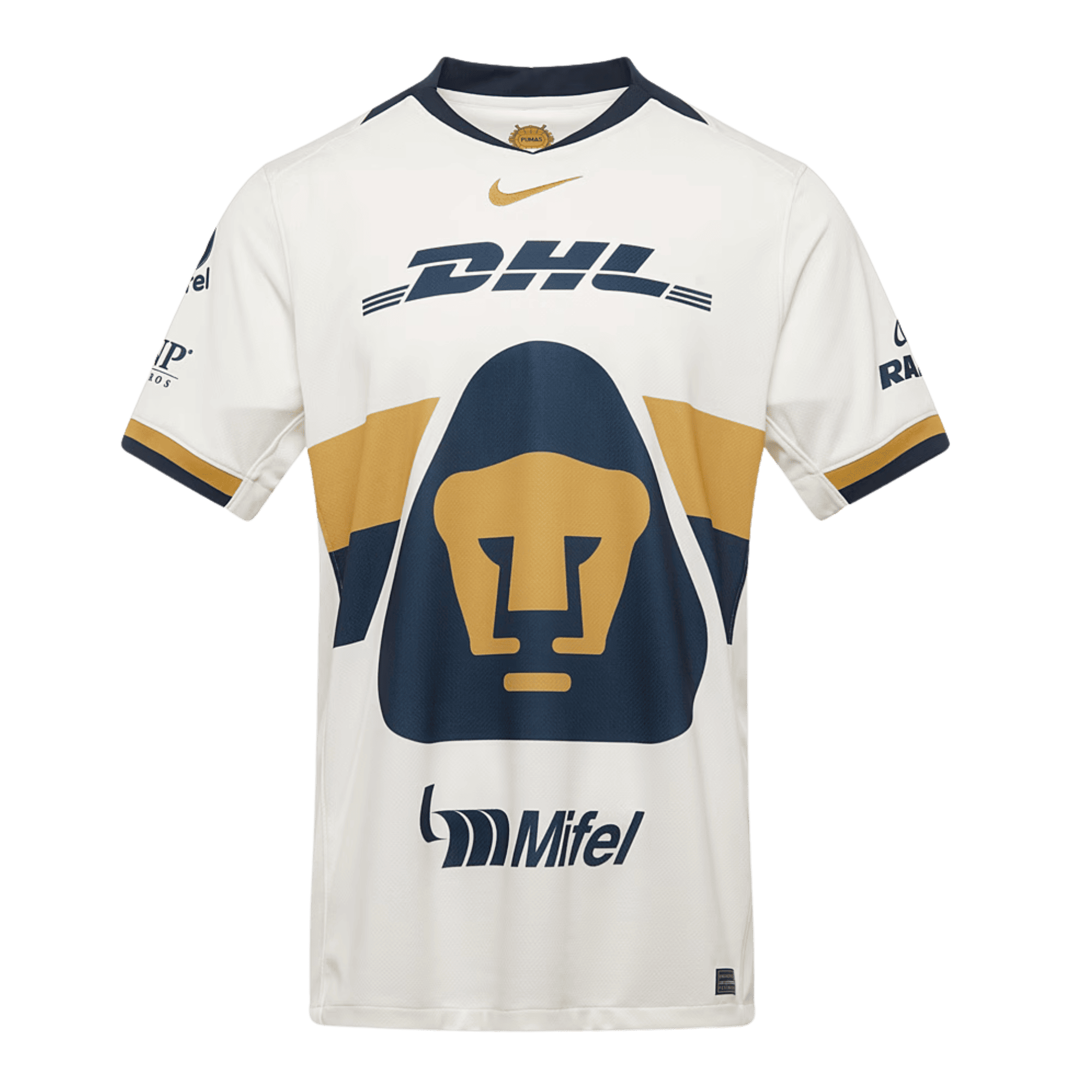 The 25/26 Pumas Home Jersey features a clean white base with a prominent navy Pumas crest emblazoned across the chest. With Nike Dri-FIT technology and breathable construction, it’s built for comfort and on-field performance.